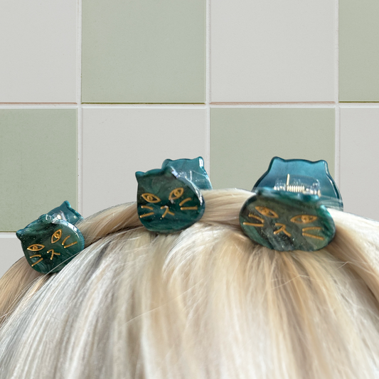 Tiny Green Kitty Hair Clip